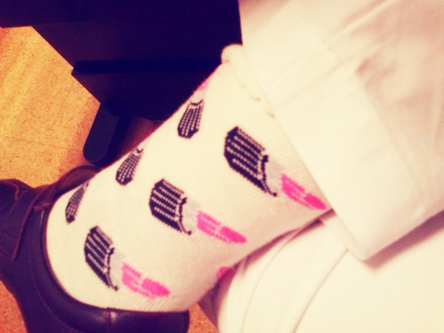 Ainda no trabalho( e já num tom de desespero patente ) deixo mais um pormenor do meu outfit de trabalho. Denomino-a como" A minha farda vai bem com..."